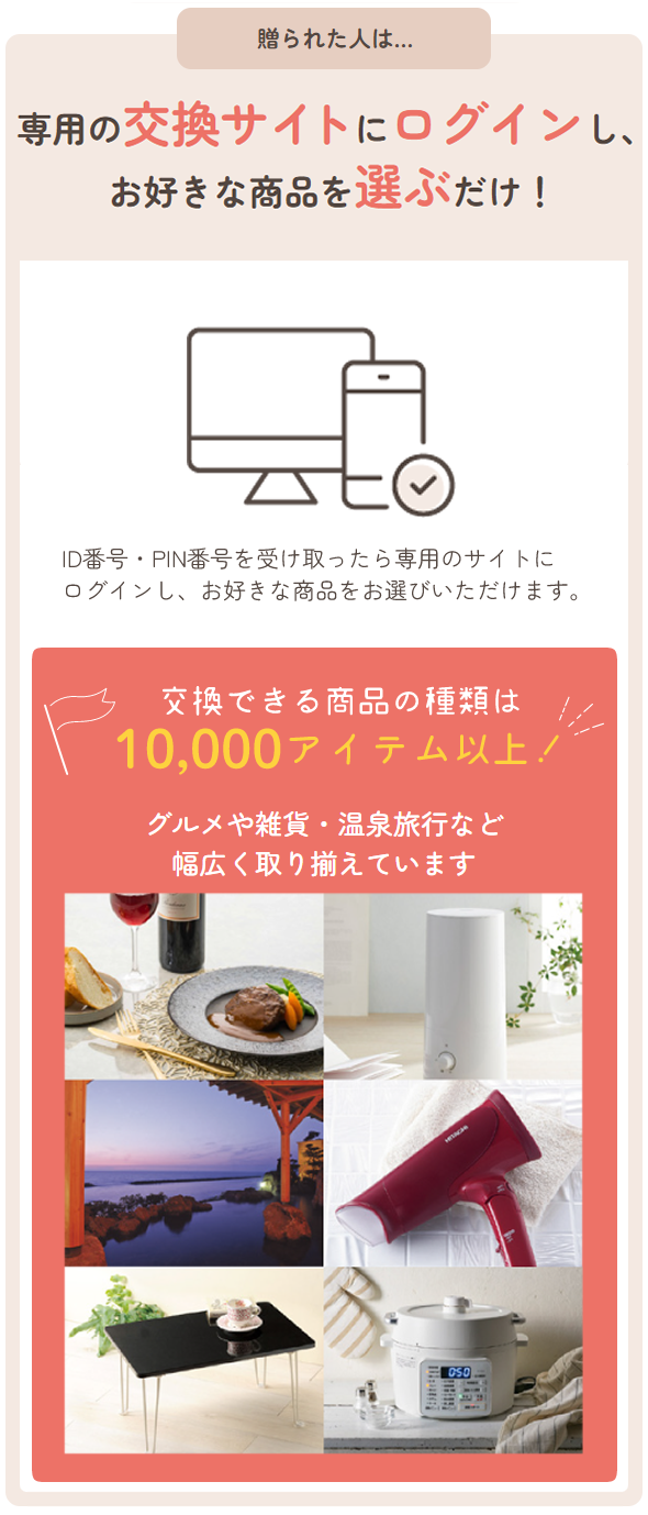 グルメや雑貨から温泉旅行など幅広く取り揃えています。