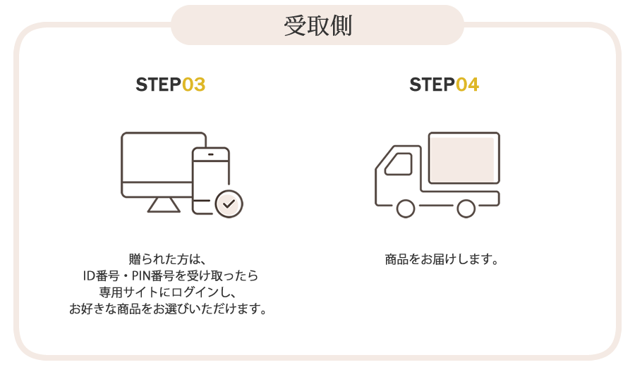 受け取られた方は専用サイトでお好きな商品と